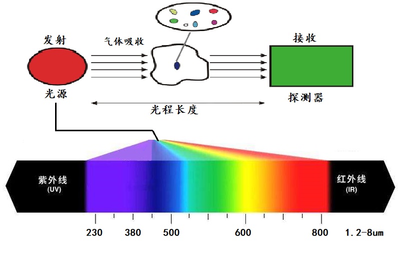光譜儀可以掃描烷烴類的吸收峰1.2-1.8um附近的吸光度光譜吸收度,從來根據每種氣體的指紋信息來區分氣體類型,通過數學模型將樣品吸光度對應不同組分濃度的吸光度曲線,每種曲線在不同波段的高度綜合運算反映出實際對應的氣體物質的真實濃度。